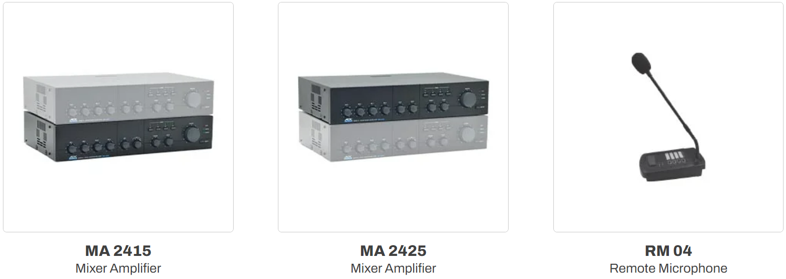 Dòng MA 2000 là dãy bộ trộn khuếch đại (Mixer Amplifiers) có thể xử lý 4 đầu vào micrô và đầu vào phụ, giúp Dòng MA 2000 phù hợp với các ứng dụng địa chỉ công cộng quy mô vừa và nhỏ, chẳng hạn như nhà thờ Hồi giáo, văn phòng, nhà hàng hoặc quán rượu, câu lạc bộ thể dục, khán phòng, nhà kho, nhà máy và cửa hàng bán lẻ. Dòng MA 2000 đi kèm với các điều khiển tăng đầu vào riêng lẻ với điều khiển âm lượng chính. Các điều khiển Bass và Treble được cung cấp để người dùng tùy chọn cân bằng. Dòng MA 2000 được tích hợp chức năng tắt tiếng giọng nói cho Mic 1, do đó ưu tiên cao nhất để ghi đè các nguồn khác trong trường hợp khẩn cấp. Có thể hoạt động bằng nguồn điện chính hoặc pin ngoài, Dòng MA 2000 là giải pháp khả thi cho bất kỳ ứng dụng di động nào, từ sự kiện thể thao trong ngày của gia đình đến tiệc ngoài vườn quy mô lớn.