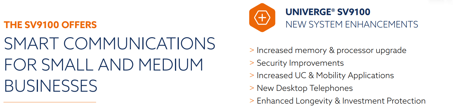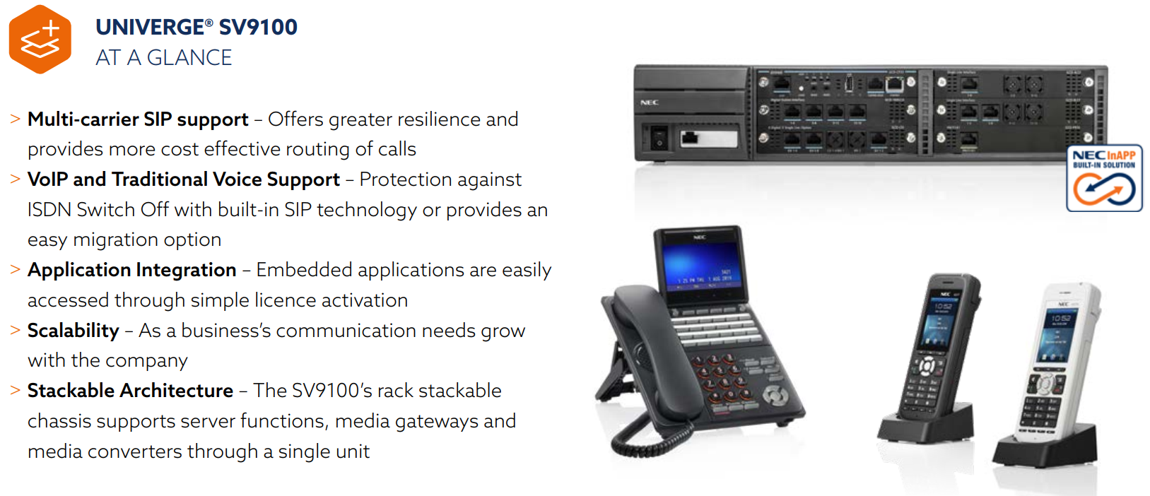 Máy chủ truyền thông UNIVERGE® SV9100 là hệ thống mạnh mẽ, giàu tính năng và có khả năng mở rộng lý tưởng cho các doanh nghiệp vừa và nhỏ. Nó được thiết kế để giúp giải quyết các thách thức truyền thông hiện nay và cung cấp khả năng mở rộng khi doanh nghiệp của bạn phát triển trong tương lai
